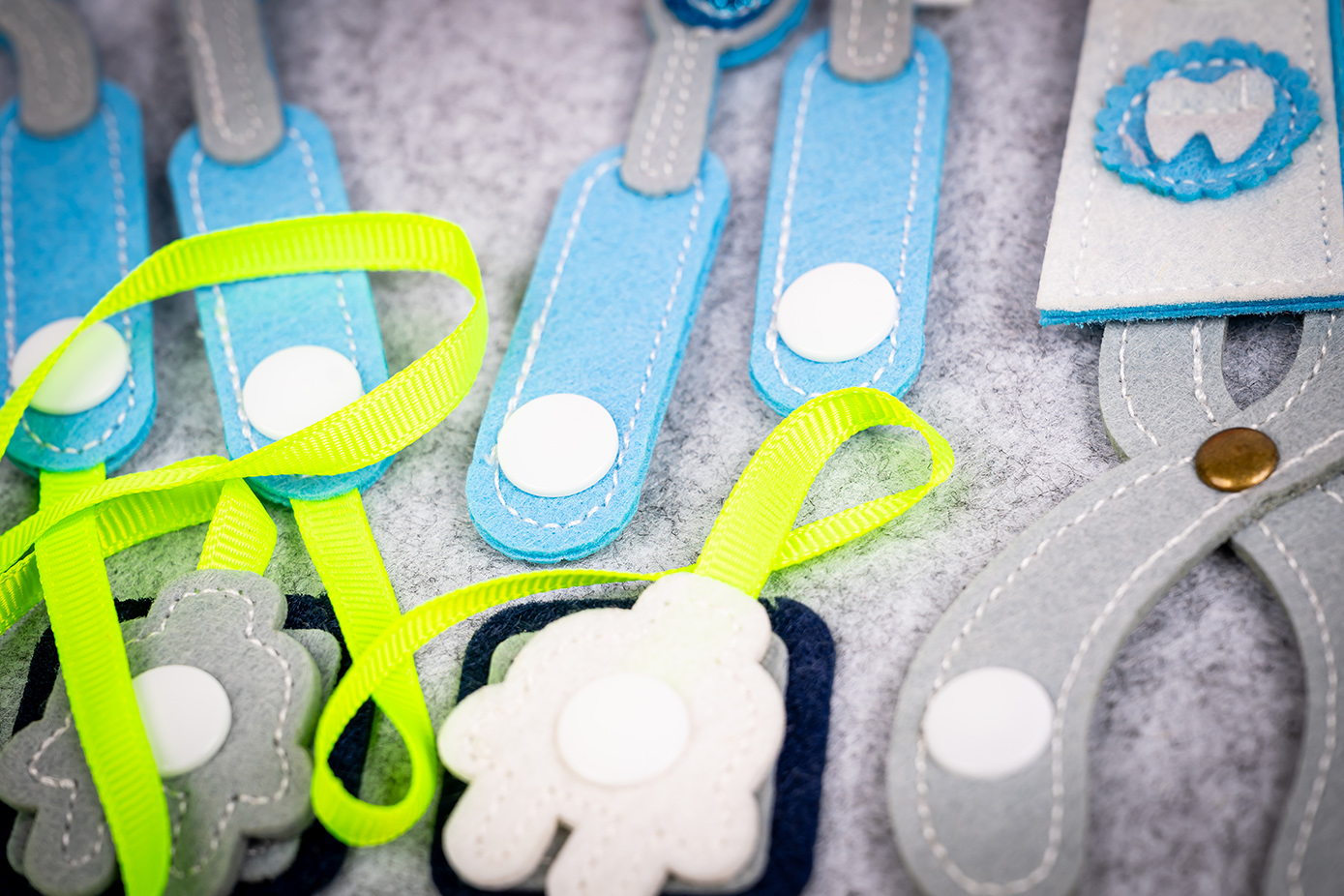 Use felt floss, toothpaste, and dental tools to “clean” and care for teeth—promoting fine motor skills and healthy routines.
